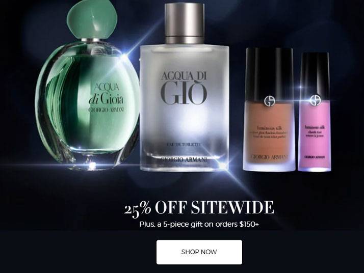 Giorgio Armani Beauty 官网现全场美妆无门槛75折,满$150送5件套!