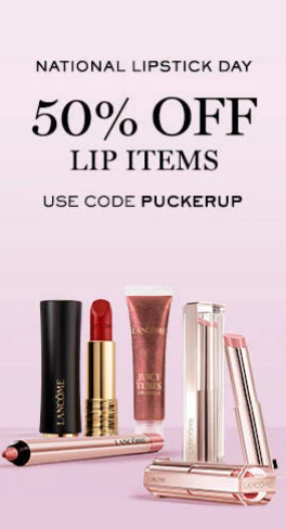 Lancôme 兰蔻官网现有国际口红节一律5折促销,需要使用折扣码 PUCKERUP 。