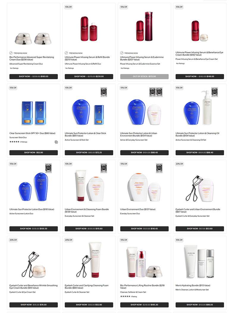Shiseido 资生堂官网现有甄选套装8折优惠,无需要使用折扣码。
