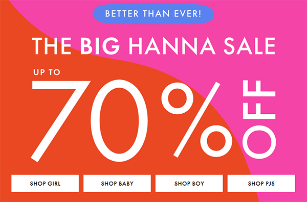 Hanna Andersson 官网童装现有年度大促低至3折;