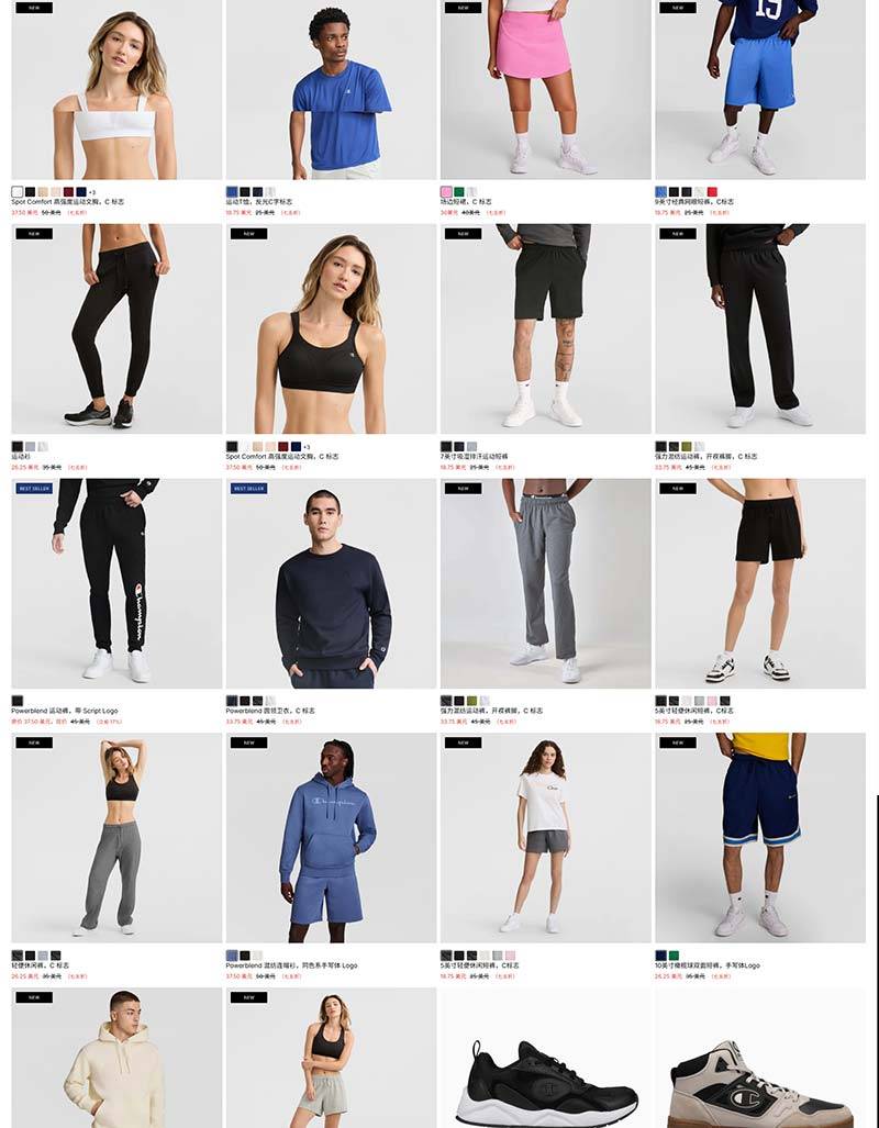 Champion 冠军官网春日大促全场无门槛7.5折促销,折后价直接显示在页面处;
