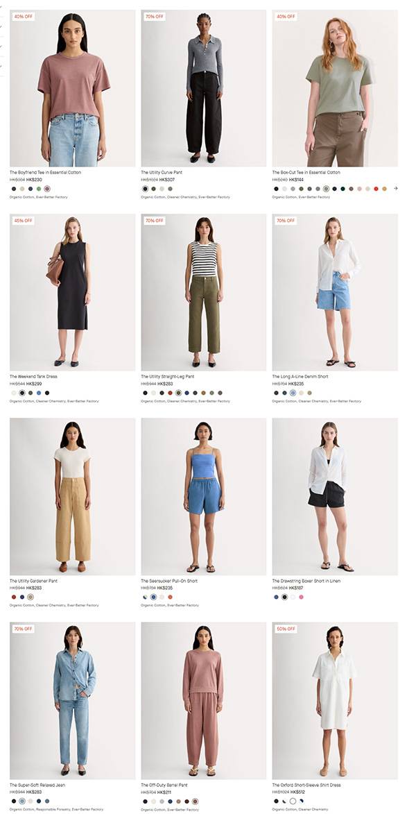 Everlane 官网现有夏日清仓大促低至3折促销,新品加入;