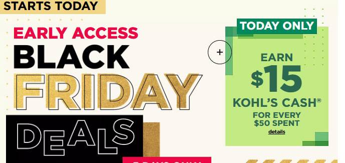Kohl's科尔士百货官网黑五早鸟额外8.5折促销,需用码:GOSHOP15;